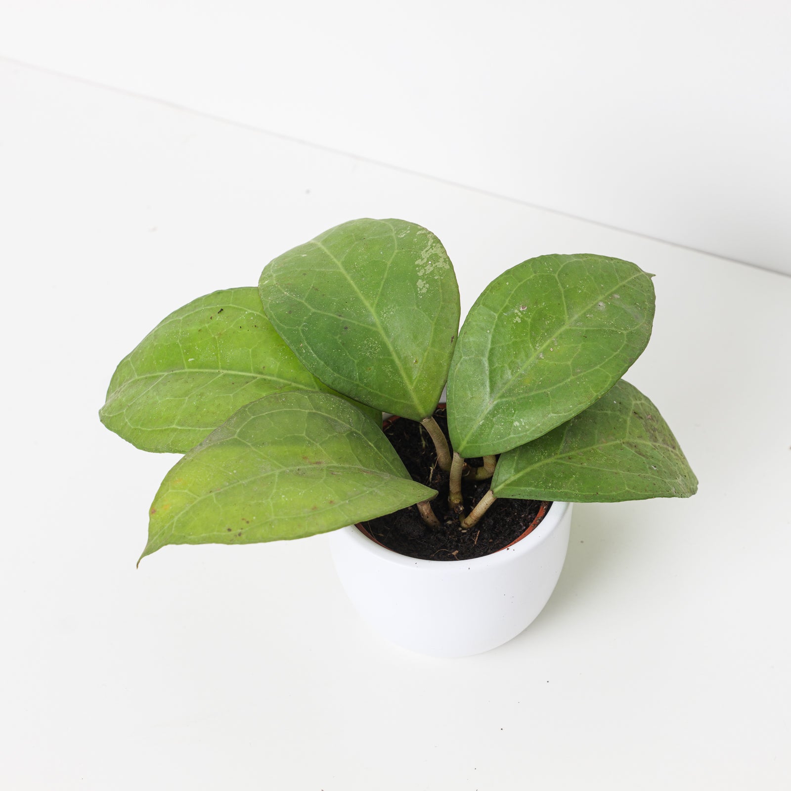 A variety of Hoya latifolia that is loved for its large, glossy leaves with elegant creamy edges and clusters of fragrant, star-shaped flowers. This tropical, slow-growing Hoya flourishes indoors, especially in bright, indirect light and moderate humidity.
