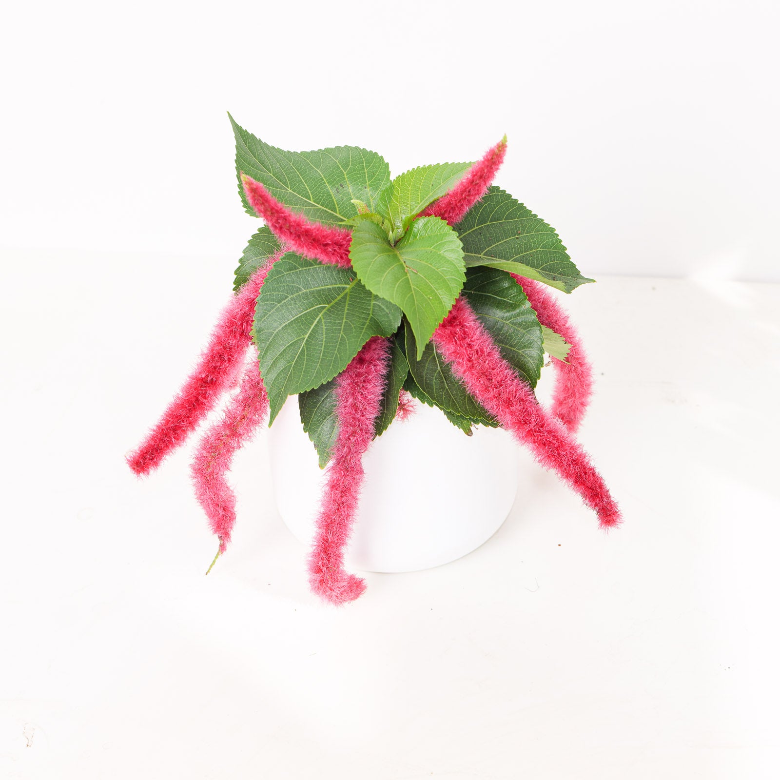 Acalypha Hispida, commonly known as the Chenille Plant or Red Hot Cattail, is a beautiful tropical plant admired for its long, fuzzy, bright red flower spikes that resemble chenille yarn. These vibrant blooms cascade gracefully from the plant, creating a dramatic and eye-catching display. Ideal for hanging baskets or as a statement piece in your home.