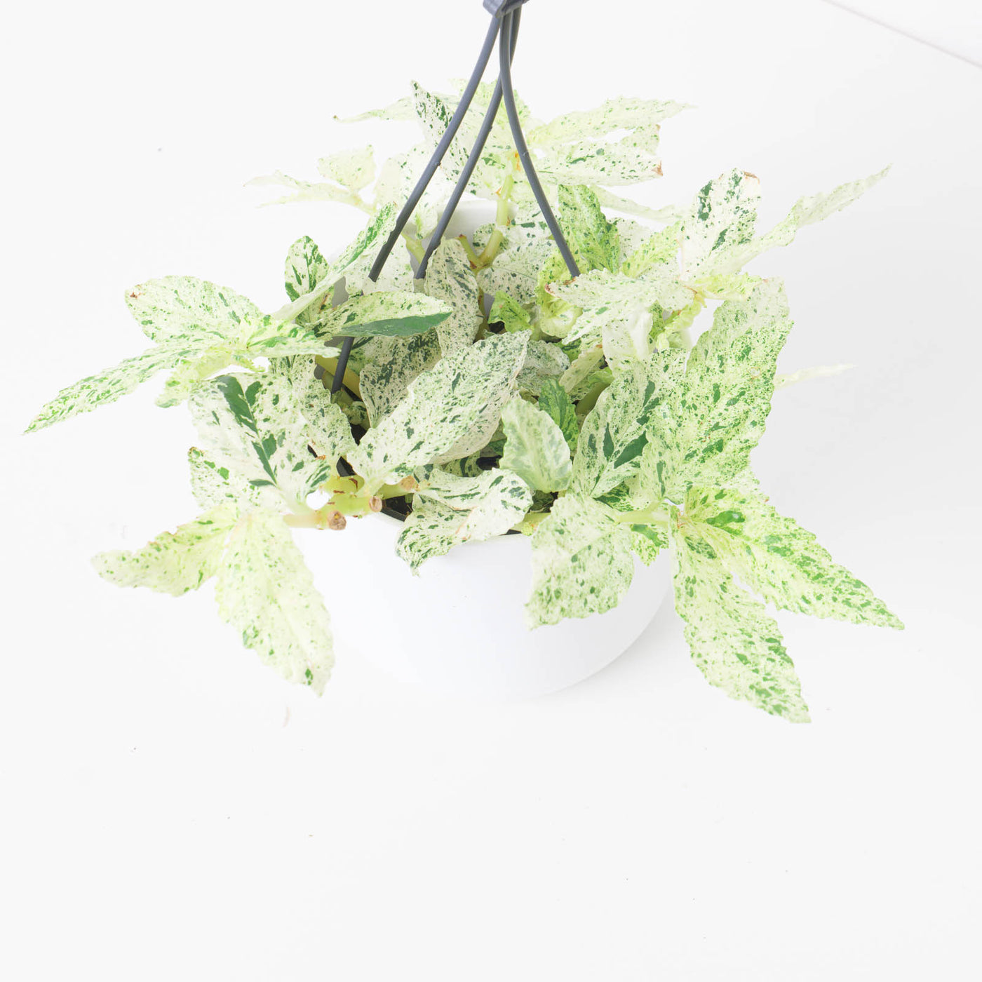 Also known as variegated Watermelon Pellionia, this trailing plant is admired for its distinctively patterned leaves in shades of light green and cream. It's perfect for adding visual interest to terrariums or as a trailing plant in hanging baskets or on shelves.